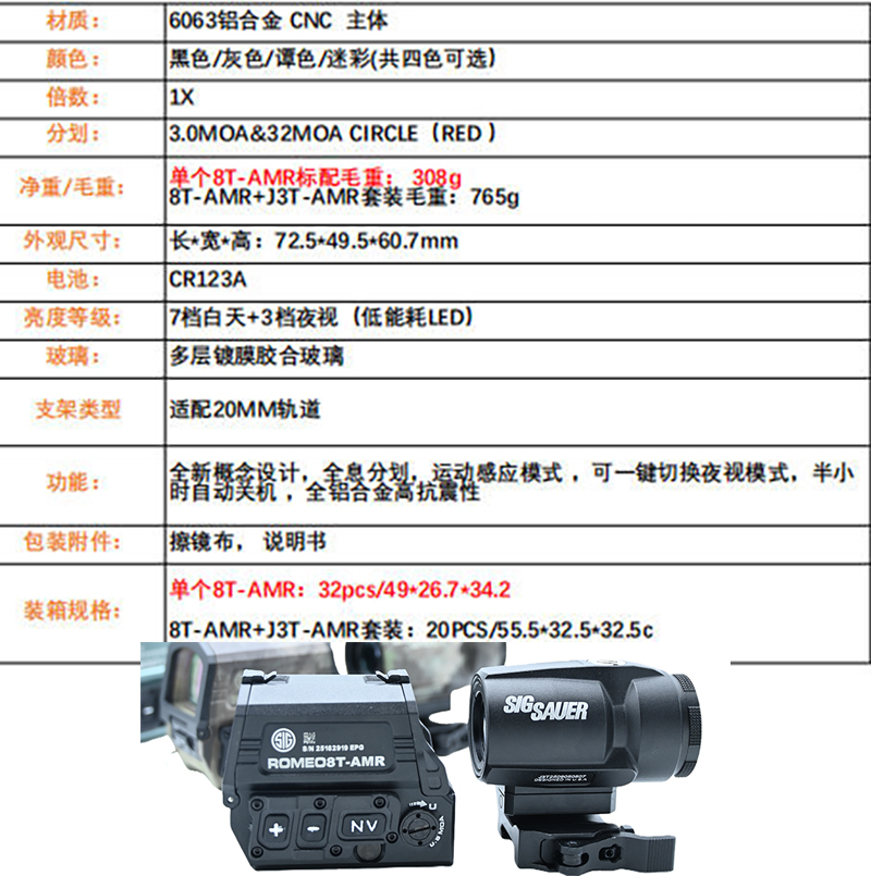 新款全息REMEO-8T 红点运动感应带夜视模式户外抗震瞄准镜 胶合玻璃
