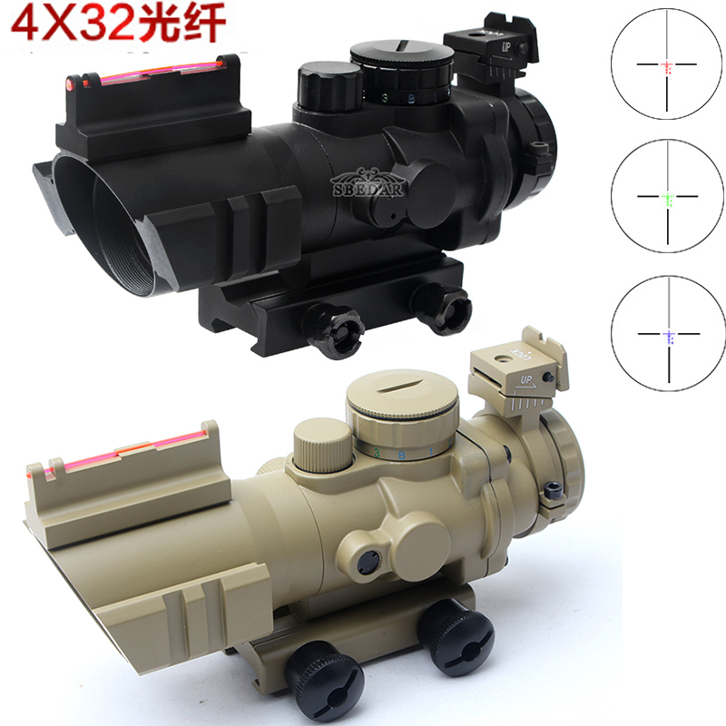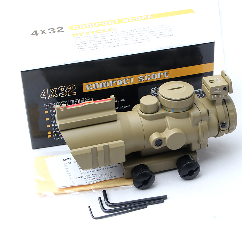 4x32 光纤导轨分划板抗震瞄准镜彩盒 小海螺沙色