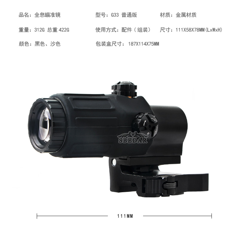 黑色版红膜快拆3倍镜558组合内红绿点全息瞄准镜