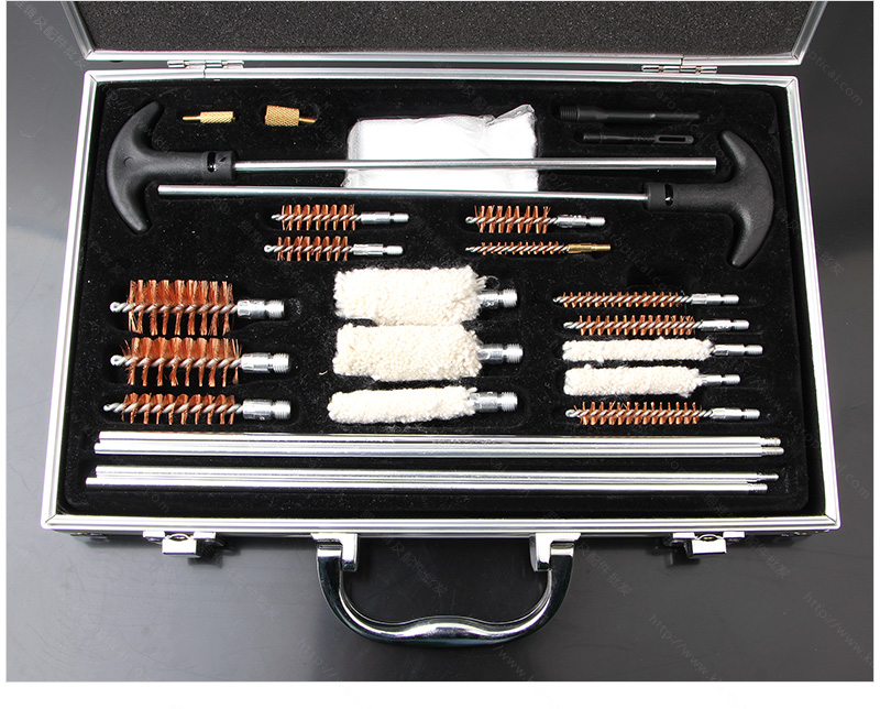 铝合金箱子,通用清洁工具,三根5MM铜杆,三根4MM铜杆,10个磷铜刷,5个棉刷,两个塑料手柄,1包无纺布,两个铜转换接头,两个塑料布针